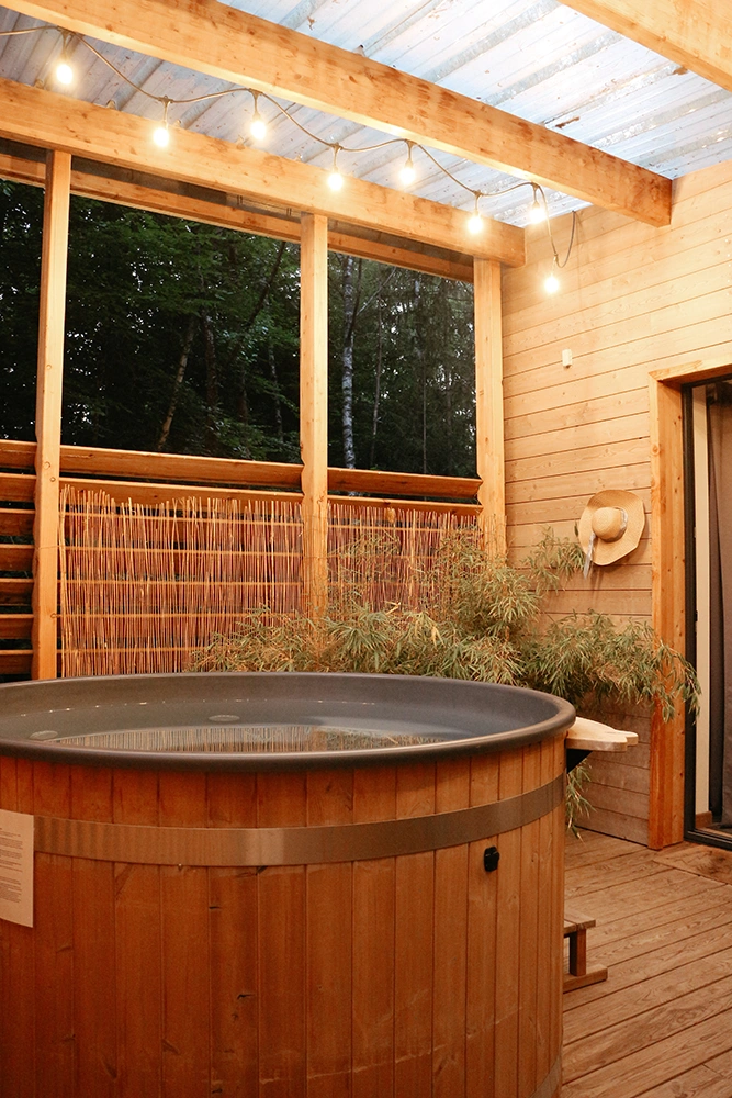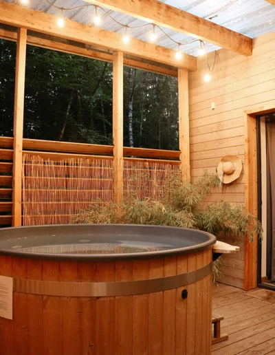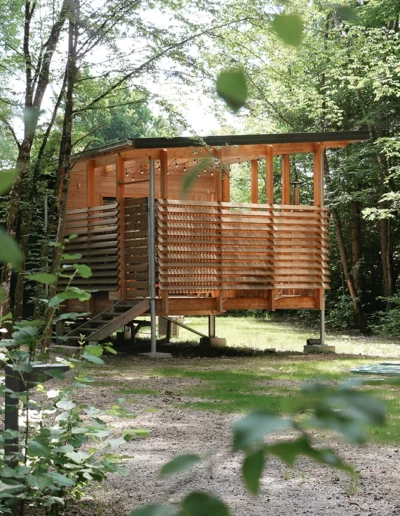 Ici, on décroche en douceur. Nichés au cœur de la nature vosgienne, quatre lodges design sur pilotis invitent à une parenthèse hors du temps, placée sous le signe du bien-être, du confort et de la simplicité élégante. Chacun dispose de son bain nordique privatif, accessible 24h/24, couvert et chauffé en continu autour de 38 °C.